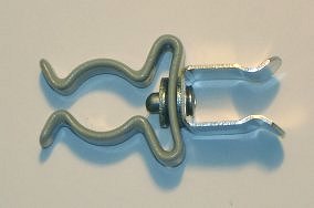 zur Befestigung von Glasrohren mit Außendurchmesser zwischen 16 und 18 Millimetern (z.B. Reagenzglas (Art. 2002 u.a.). Die Stahlfeder ist gegenüber der kunststoffumantelte Feder frei drehbar (siehe Bild unten).