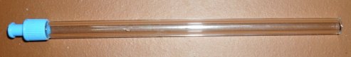 Beschreibung: Die Tropfpipette mit Luer-Lock-Ansatz besteht aus einem Borosilikat-3.3-Glasrohr von d=8mm Außendurchmesser und einem Innendurchmesser von ca. 5 mm. In dieses Glasrohr ist der Kunststoffteil ( in der Regel aus Polyethylen) einer handelsüblichen Kanüle ohne Metallrohr mit Zweikomponenten-Kleber eingeklebt. Warnung: Die Tropfpipette ist nur in Verbindung mit Kolbenproberspritzen einzusetzen, eine Kombination mit Pipettensauger ist nur dann gasdicht, wenn der Pipettensauger bis auf das Glasrohr reicht. Dann aber ist das Saugvolumen des Pipettensaugers in der Regel zu sehr eingeschränkt. |