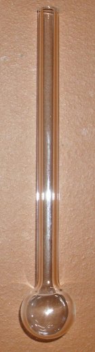 Die Glühkugel besteht aus Borosilikat-3.3-Glas und hat einen Kugeldurchmesser zwischen 25 und 20 mm und einen gerade Rohransatz von ca. 100 mm mit einem Rphrdurchmesser d(a)= 8 mm. |