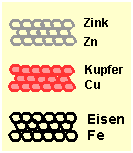 Arbeitsanweisung: Messing Jerstellung Bild 1: Atomare Darstellung von Kupfer, Zink und Eisen Bild 2 : Bildung einer geordneten Zusammenlagerung von Kupfer (Element) und Zink (Element) unter Bildung von Messing (Verbindung) Bild 3 : Element- und Verbindungsbegriff bei der Herstellung eines Messingüberzuges einer 5- Cent-Münze und Recycling Textvorlage 11: Verantwortung am Beispiel Messingherstellung Lernkartei 11: Verantwortung am Beispiel Messingherstellung Test 1: Stoffaufbau von Messing (.doc)