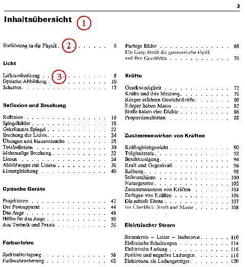 Das Inhaltsverzeichnis ist nach Themen geordnet. Bei einem Lehrbuch beginnt man mit den leichteren Dingen, an denen man die Denk- und Arbeitsweise erklärt. Anschließend folgen die komplizierteren Themen. Jedes Unterkapitel ist in sich wieder von leicht nach schwer geordnet. Hat man von einem Gebiet nur geringe Kenntnisse, so empfiehlt es sich, die Themen von vorn nach hinten durchzulesen. So werden am Anfang oft Begriffe und Fachausdrücke erklärt, die später nur noch ohne weitere Erklärung benutzt werden. |