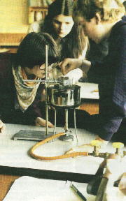 | In einem zweiten Becherglas wird destilliertes Wasser zum Kochen gebracht.